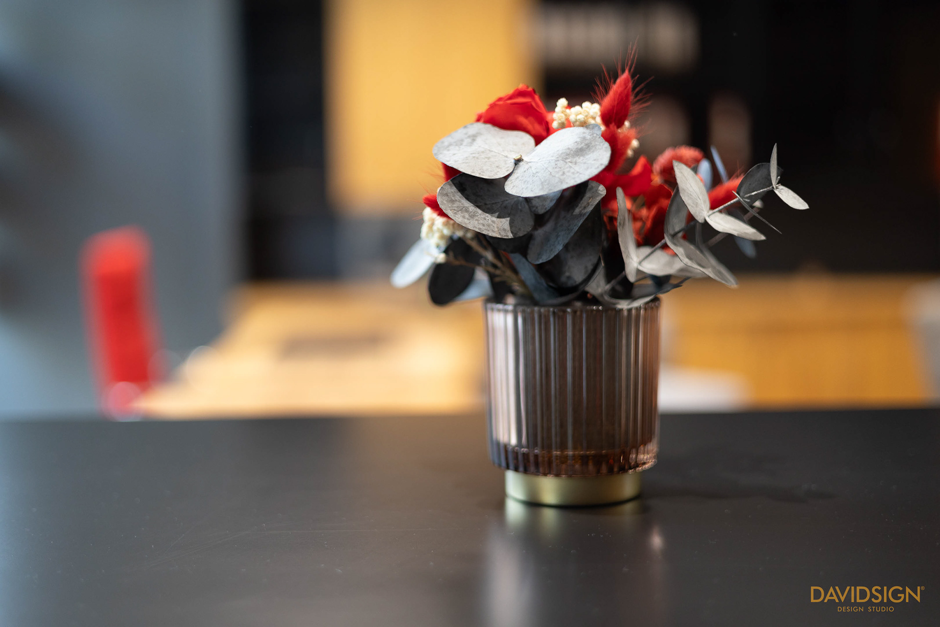 Thus, we opted for a minimalist design, with sober furniture, neutral colours, and red accents, a chromatic element drawn from the Brucken logo.